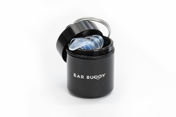 El llavero de aluminio portable permite llevar tus Ear Buddy siempre contigo.